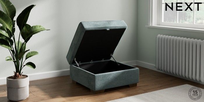 7.2.10 Stamford Buttoned Back Storage Footstool Chunky Chenille Light Teal Green Square Angle - Mid | Made Click here to use our website with more accessibility support, for example screen readers