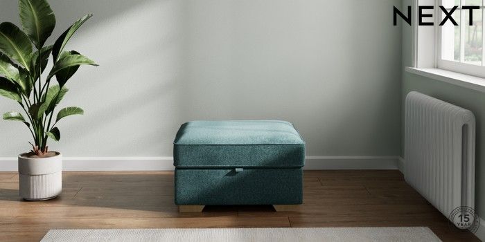 7.2.10 Stamford Buttoned Back Storage Footstool Chunky Chenille Mid Teal Green Square Angle - Light | Made Click here to use our website with more accessibility support, for example screen readers
