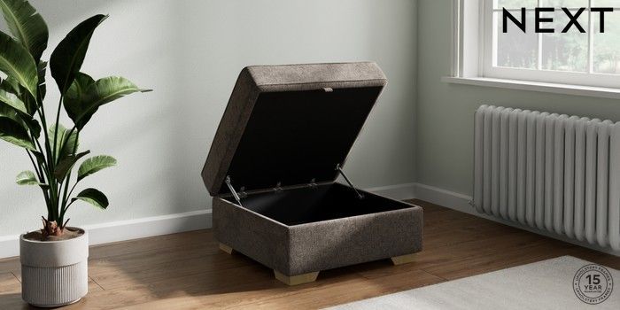 7.2.10 Stamford Buttoned Back Storage Footstool Chunky Chenille Mink Brown Square Angle - Light | Made Click here to use our website with more accessibility support, for example screen readers