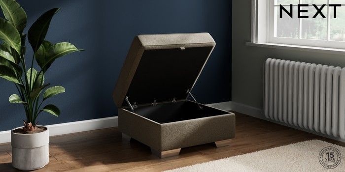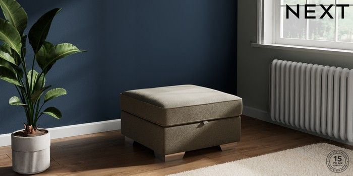 7.2.10 Stamford Buttoned Back Storage Footstool Chunky Marl Light Olive Green Square Angle - Chrome Metal | Made Click here to use our website with more accessibility support, for example screen readers