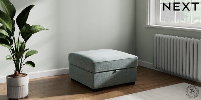7.2.10 Stamford Buttoned Back Storage Footstool Chunky Marl Mid Blue Square Angle - Dark | Made Click here to use our website with more accessibility support, for example screen readers