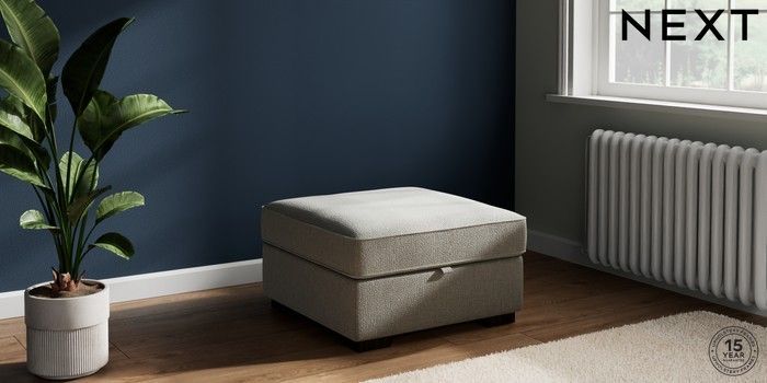 7.2.10 Stamford Buttoned Back Storage Footstool Chunky Texture Dove Square Angle - Dark | Made Click here to use our website with more accessibility support, for example screen readers