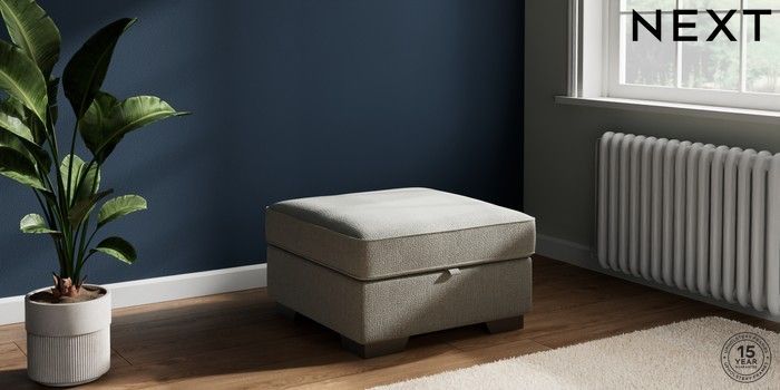7.2.10 Stamford Buttoned Back Storage Footstool Chunky Texture Dove Square Angle - Gunmetal | Made Click here to use our website with more accessibility support, for example screen readers