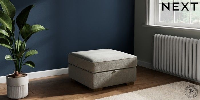 7.2.10 Stamford Buttoned Back Storage Footstool Chunky Texture Dove Square Angle - Mid | Made Click here to use our website with more accessibility support, for example screen readers