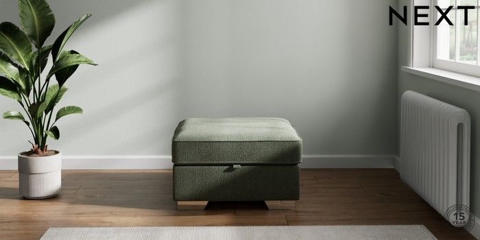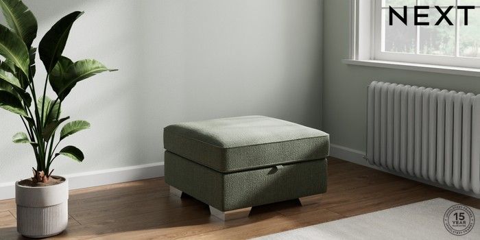 7.2.10 Stamford Buttoned Back Storage Footstool Chunky Texture Mid Forest Green Square Angle - Chrome Metal | Made Click here to use our website with more accessibility support, for example screen readers