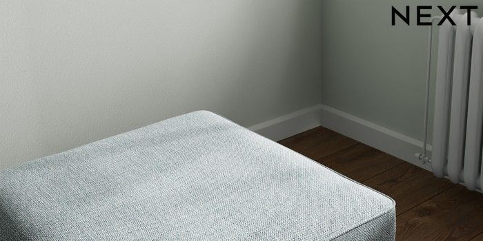 7.2.10 Stamford Buttoned Back Storage Footstool Chunky Weave Mid Blue Square Angle - Light | Made Click here to use our website with more accessibility support, for example screen readers