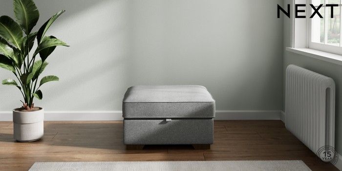 7.2.10 Stamford Buttoned Back Storage Footstool Chunky Weave Mid Grey Square Angle - Mid | Made Click here to use our website with more accessibility support, for example screen readers