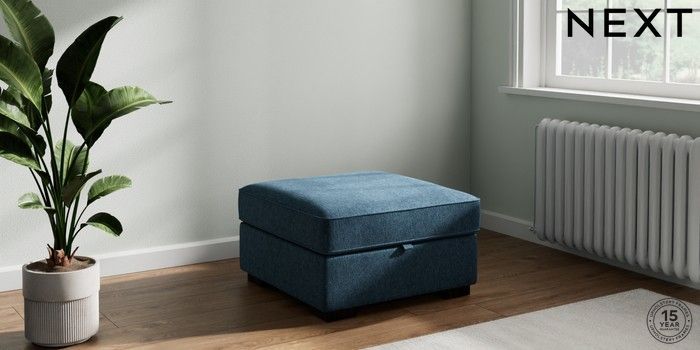 7.2.10 Stamford Buttoned Back Storage Footstool Cotswold Chenille Dark Blue Square Angle - Dark | Made Click here to use our website with more accessibility support, for example screen readers