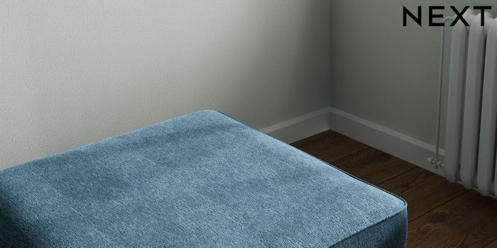 7.2.10 Stamford Buttoned Back Storage Footstool Cotswold Chenille Dark Blue Square Angle - Gunmetal | Made Click here to use our website with more accessibility support, for example screen readers
