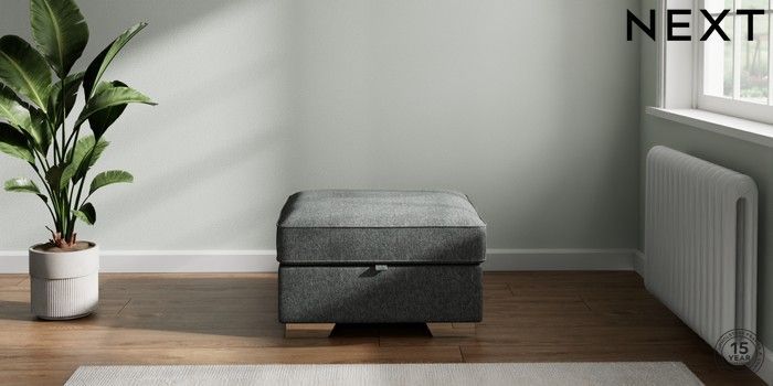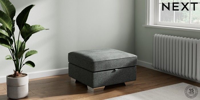 7.2.10 Stamford Buttoned Back Storage Footstool Cotswold Chenille Dark Grey Square Angle - Chrome Metal | Made Click here to use our website with more accessibility support, for example screen readers