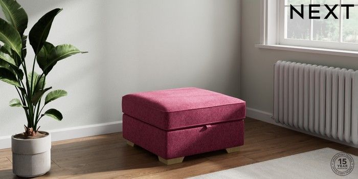 7.2.10 Stamford Buttoned Back Storage Footstool Cotswold Chenille Dark Raspberry Pink Square Angle - Light | Made Click here to use our website with more accessibility support, for example screen readers