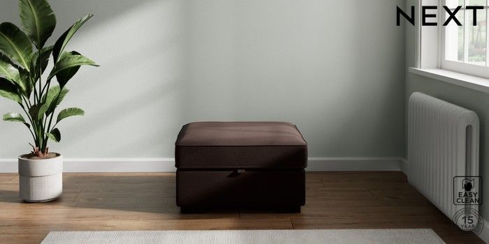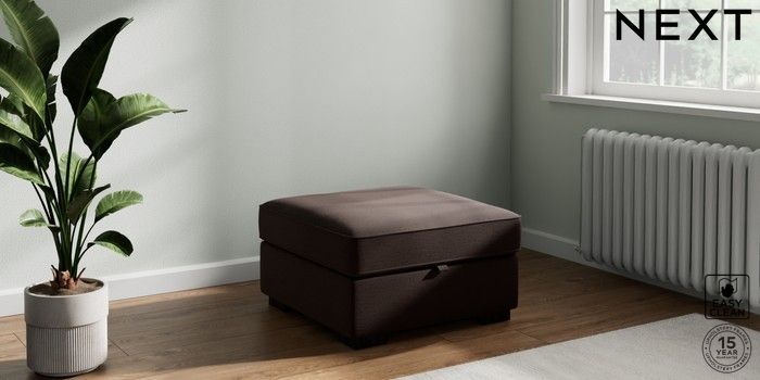 7.2.10 Stamford Buttoned Back Storage Footstool Fine Chenille Easy Clean Chocolate Brown Square Angle - Dark | Made Click here to use our website with more accessibility support, for example screen readers