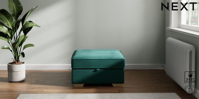 7.2.10 Stamford Buttoned Back Storage Footstool Fine Chenille Easy Clean Dark Juniper Green Square Angle - Light | Made Click here to use our website with more accessibility support, for example screen readers