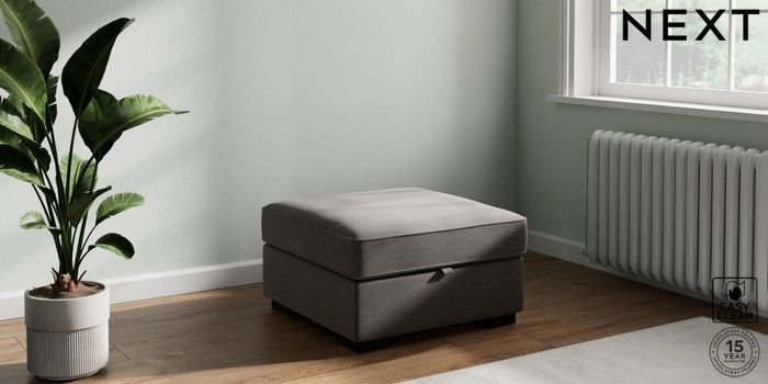 7.2.10 Stamford Buttoned Back Storage Footstool Fine Chenille Easy Clean Dark Smoke Grey Square Angle - Dark | Made Click here to use our website with more accessibility support, for example screen readers