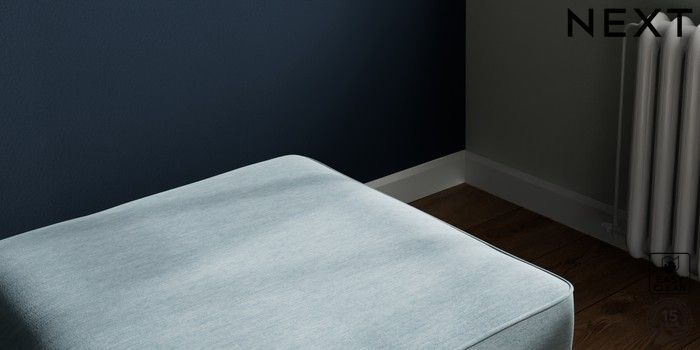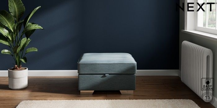 7.2.10 Stamford Buttoned Back Storage Footstool Fine Chenille Easy Clean Mid Blue Square Angle - Chrome Metal | Made Click here to use our website with more accessibility support, for example screen readers