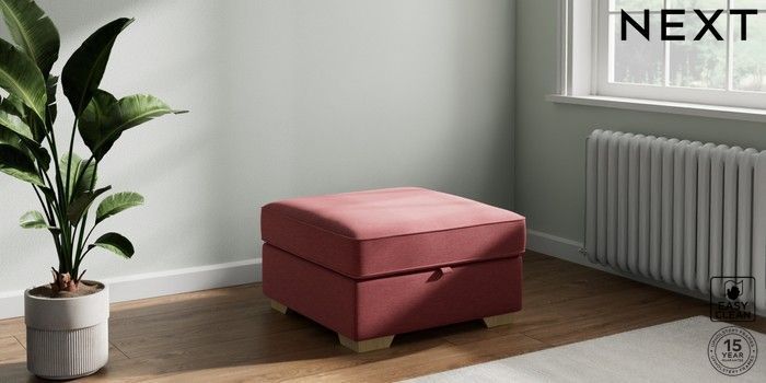 7.2.10 Stamford Buttoned Back Storage Footstool Fine Chenille Easy Clean Mid Pink Square Angle - Light | Made Click here to use our website with more accessibility support, for example screen readers