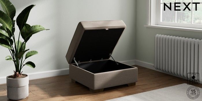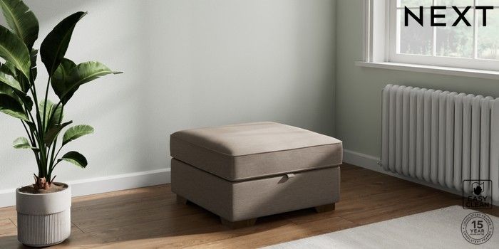 7.2.10 Stamford Buttoned Back Storage Footstool Fine Chenille Easy Clean Mid Taupe Brown Square Angle - Mid | Made Click here to use our website with more accessibility support, for example screen readers