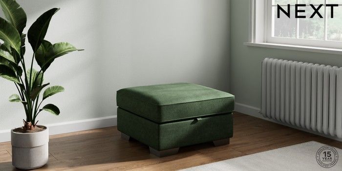 7.2.10 Stamford Buttoned Back Storage Footstool Luxe Chenille Dark Green Square Angle - Gunmetal | Made Click here to use our website with more accessibility support, for example screen readers