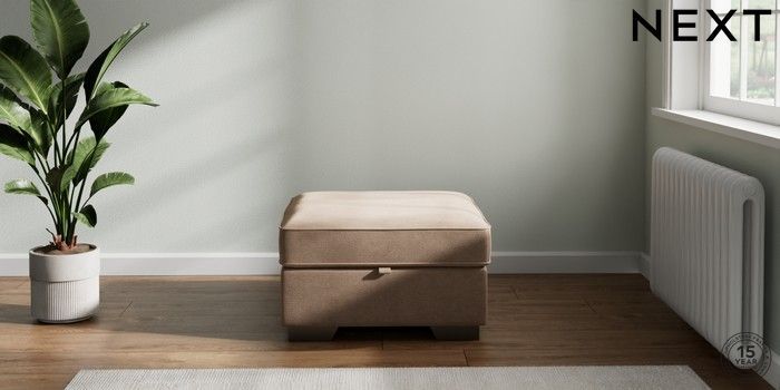 7.2.10 Stamford Buttoned Back Storage Footstool Luxe Chenille Mid Natural Square Angle - Gunmetal | Made Click here to use our website with more accessibility support, for example screen readers