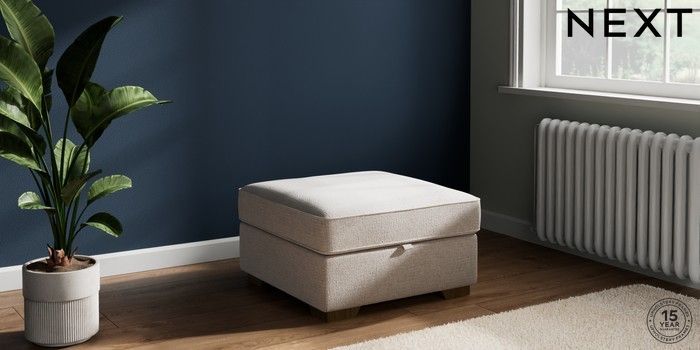 7.2.10 Stamford Buttoned Back Storage Footstool Multi Weave Oyster Square Angle - Mid | Made Click here to use our website with more accessibility support, for example screen readers