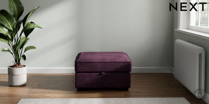 7.2.10 Stamford Buttoned Back Storage Footstool Plush Chenille Dark Plum Purple Square Angle - Dark | Made Click here to use our website with more accessibility support, for example screen readers