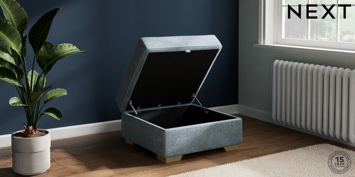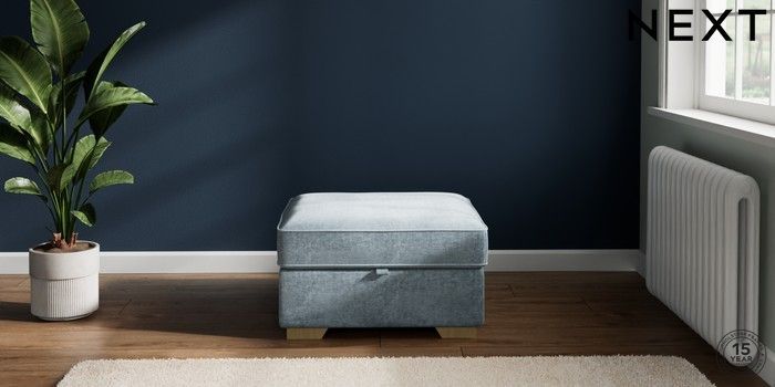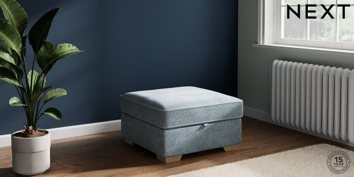 7.2.10 Stamford Buttoned Back Storage Footstool Plush Chenille Light Blue Square Angle - Light | Made Click here to use our website with more accessibility support, for example screen readers