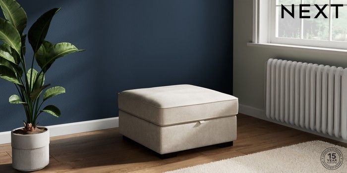 7.2.10 Stamford Buttoned Back Storage Footstool Plush Chenille Oyster Square Angle - Dark | Made Click here to use our website with more accessibility support, for example screen readers