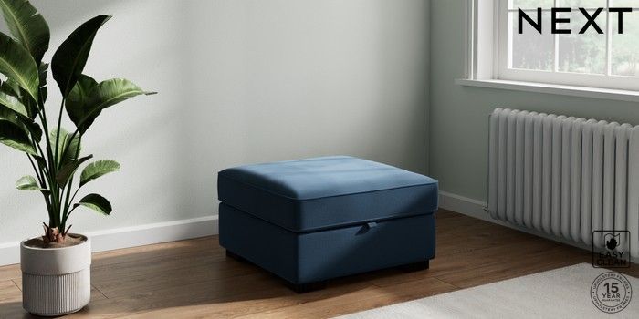 7.2.10 Stamford Buttoned Back Storage Footstool Plush Velvet Easy Clean Airforce Blue Square Angle - Dark | Made Click here to use our website with more accessibility support, for example screen readers