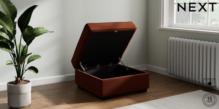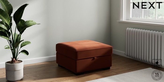 7.2.10 Stamford Buttoned Back Storage Footstool Plush Velvet Easy Clean Ginger Orange Square Angle - Dark | Made Click here to use our website with more accessibility support, for example screen readers