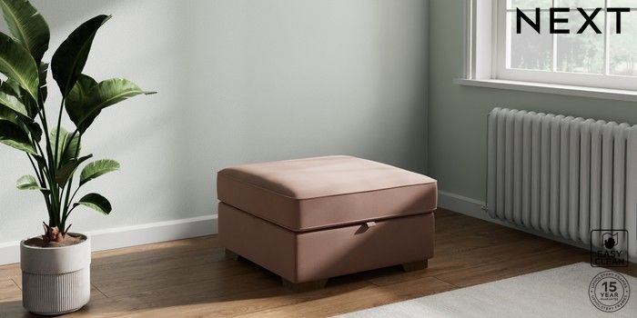 7.2.10 Stamford Buttoned Back Storage Footstool Plush Velvet Easy Clean Mid Natural Square Angle - Mid | Made Click here to use our website with more accessibility support, for example screen readers