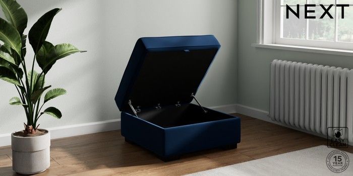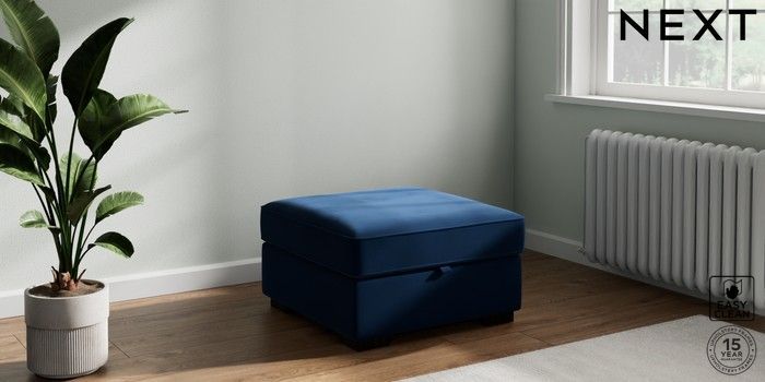 7.2.10 Stamford Buttoned Back Storage Footstool Plush Velvet Easy Clean Navy Blue Square Angle - Dark | Made Click here to use our website with more accessibility support, for example screen readers