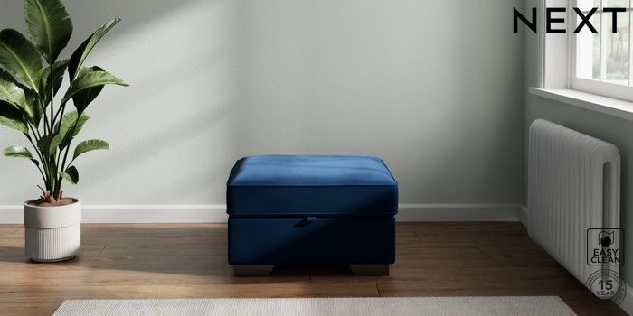 7.2.10 Stamford Buttoned Back Storage Footstool Plush Velvet Easy Clean Navy Blue Square Angle - Gunmetal | Made Click here to use our website with more accessibility support, for example screen readers