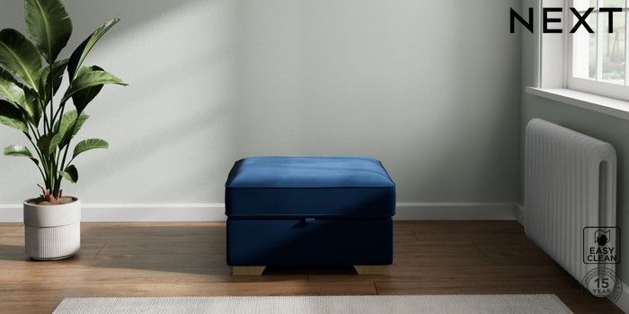 7.2.10 Stamford Buttoned Back Storage Footstool Plush Velvet Easy Clean Navy Blue Square Angle - Light | Made Click here to use our website with more accessibility support, for example screen readers