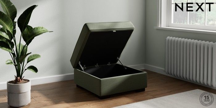 7.2.10 Stamford Buttoned Back Storage Footstool Relaxed Linen Look Dark Green Square Angle - Dark | Made Click here to use our website with more accessibility support, for example screen readers