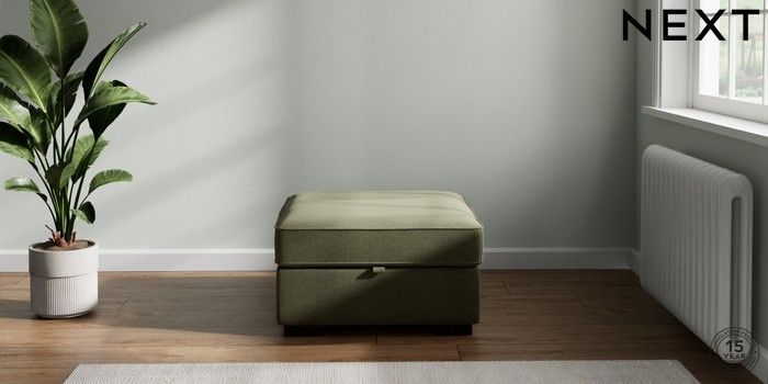 7.2.10 Stamford Buttoned Back Storage Footstool Ripple Chenille Mid Moss Green Square Angle - Dark | Made Click here to use our website with more accessibility support, for example screen readers