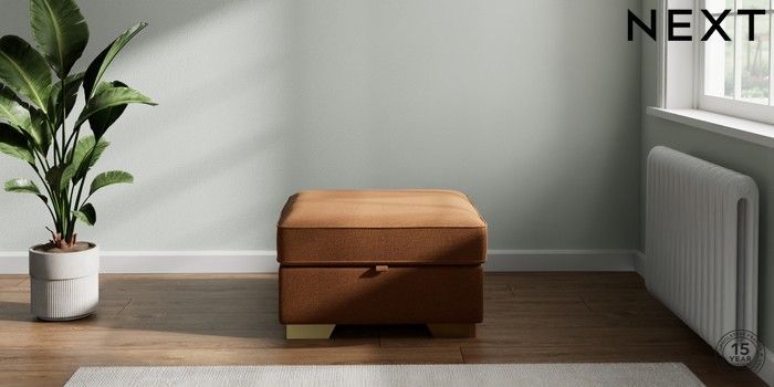 7.2.10 Stamford Buttoned Back Storage Footstool Ripple Chenille Mid Rust Brown Square Angle - Brushed Brass | Made Click here to use our website with more accessibility support, for example screen readers