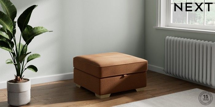 7.2.10 Stamford Buttoned Back Storage Footstool Ripple Chenille Mid Rust Brown Square Angle - Light | Made Click here to use our website with more accessibility support, for example screen readers
