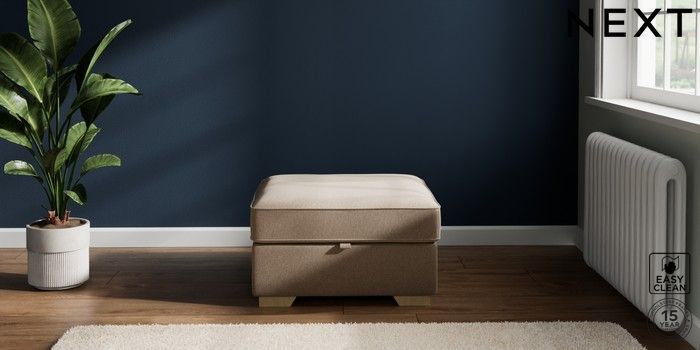 7.2.10 Stamford Buttoned Back Storage Footstool Tweedy Blend Easy Clean Light Dove Natural Square Angle - Light | Made Click here to use our website with more accessibility support, for example screen readers