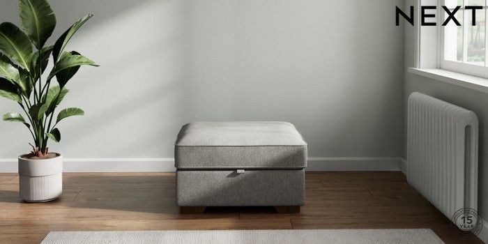 7.2.10 Stamford Buttoned Back Storage Footstool Tweedy Chenille Mid Grey Square Angle - Mid | Made Click here to use our website with more accessibility support, for example screen readers