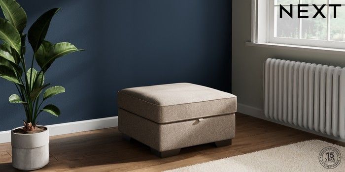 7.2.10 Stamford Buttoned Back Storage Footstool Tweedy Chenille Mid Natural Square Angle - Gunmetal | Made Click here to use our website with more accessibility support, for example screen readers