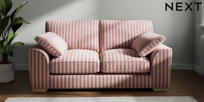 7.2.10 Stamford Grand Relaxed Sit 2 Seater Sofa Bold Chenille Stripe Dark Pink Large Square Angle - Light | Made Click here to use our website with more accessibility support, for example screen readers