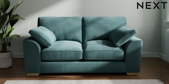 7.2.10 Stamford Grand Relaxed Sit 2 Seater Sofa Chunky Chenille Mid Teal Green Large Square Angle - Light | Made Click here to use our website with more accessibility support, for example screen readers