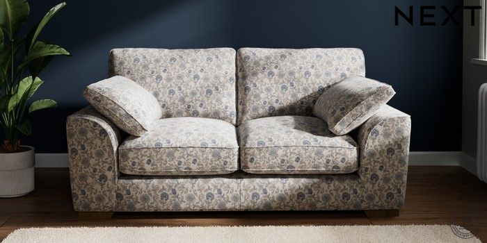 7.2.10 Stamford Grand Relaxed Sit 2 Seater Sofa Relaxed Linen Look Print Woodblock Floral Blue Large Square Angle - Mid | Made Click here to use our website with more accessibility support, for example screen readers