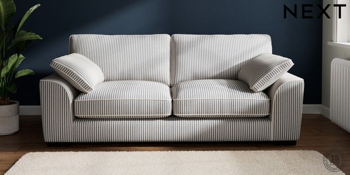 7.2.10 Stamford Grand Relaxed Sit 3 Seater Sofa Chenille Stripe Slate Blue Large Square Angle - Dark | Made Click here to use our website with more accessibility support, for example screen readers