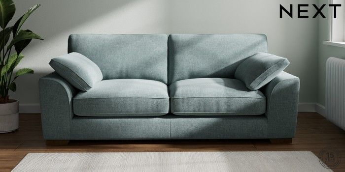 7.2.10 Stamford Grand Relaxed Sit 3 Seater Sofa Chunky Chenille Light Teal Green Large Square Angle - Mid | Made Click here to use our website with more accessibility support, for example screen readers