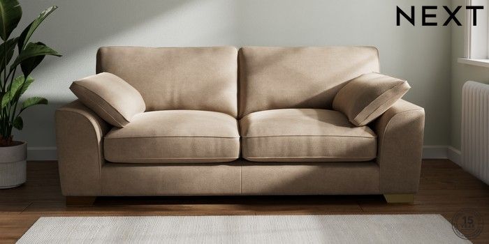 7.2.10 Stamford Grand Relaxed Sit 3 Seater Sofa Luxe Chenille Mid Camel Beige Large Square Angle - Brushed Brass | Made Click here to use our website with more accessibility support, for example screen readers