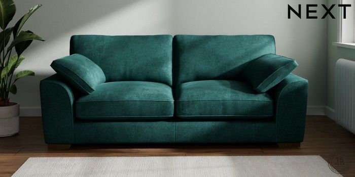 7.2.10 Stamford Grand Relaxed Sit 3 Seater Sofa Plush Chenille Dark Teal Green Large Square Angle - Mid | Made Click here to use our website with more accessibility support, for example screen readers