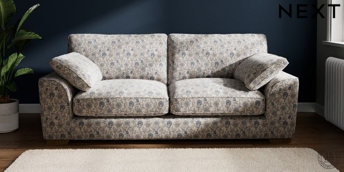 7.2.10 Stamford Grand Relaxed Sit 3 Seater Sofa Relaxed Linen Look Print Woodblock Floral Blue Large Square Angle - Mid | Made Click here to use our website with more accessibility support, for example screen readers