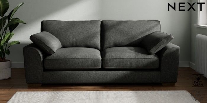 7.2.10 Stamford Grand Relaxed Sit 3 Seater Sofa Tweedy Blend Easy Clean Charcoal Grey Large Square Angle - Mid | Made Click here to use our website with more accessibility support, for example screen readers