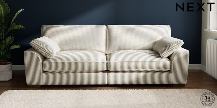 7.2.10 Stamford Grand Relaxed Sit 4 Seater Sofa Chenille Stripe Moss Green Large Square Angle - Mid | Made Click here to use our website with more accessibility support, for example screen readers